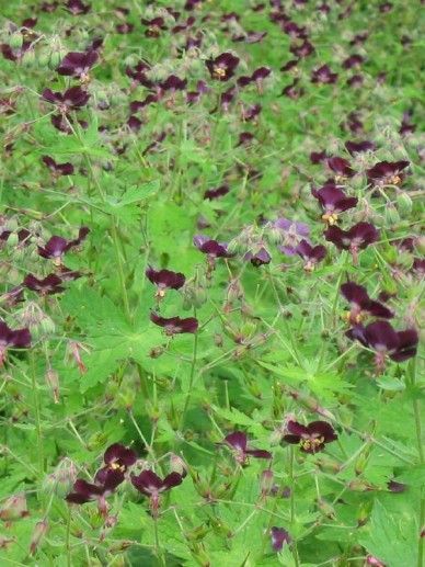 Geranium phaeum (donkere ooievaarsbek) - helemaal links op de foto, bijzonder blad